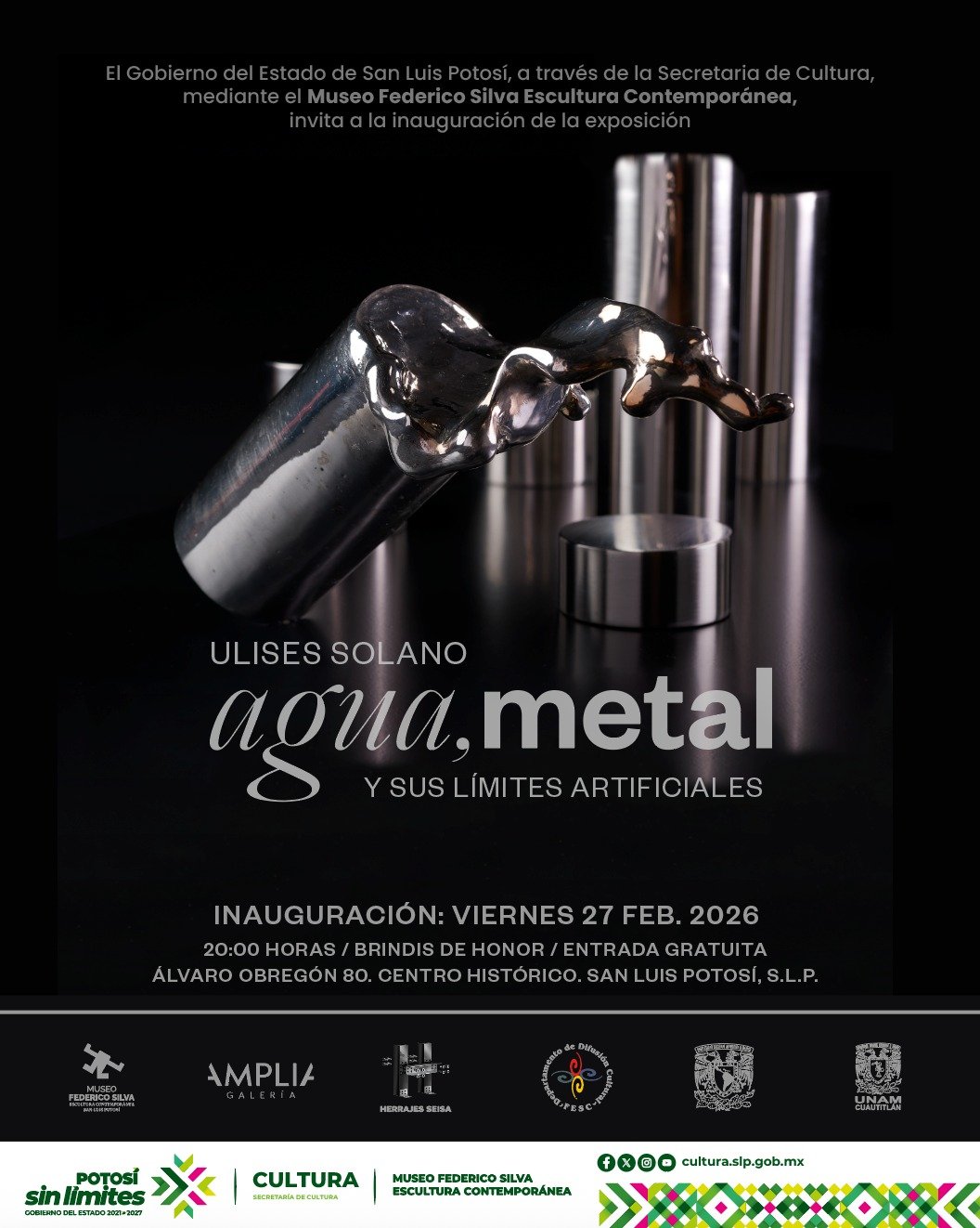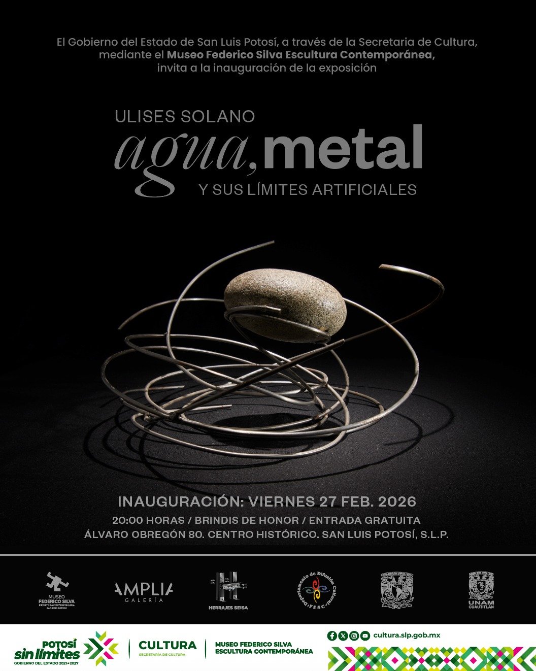 El Museo Federico Silva Escultura Contemporánea en San Luis Potosí abrirá sus puertas el viernes 27 de febrero a las 21:00 h, para presentar una de las propuestas más disruptivas de la temporada: “Agua, metal y sus límites artificiales”, la más reciente serie del escultor Ulises Solano.