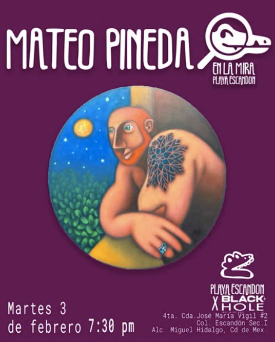 En nuestro cambio de sede, estamos muy emocionados en comunicar uno de nuestros proyectos “En la mira”, una apuesta única, en la cual nos acompañará en esta primera ocasión en #PlayaEscandónXBlackHoleLab el artista @mateopinedaarte 🎨 la muestra también se estrena durante la semana del arte de la CDMX. #art #arte