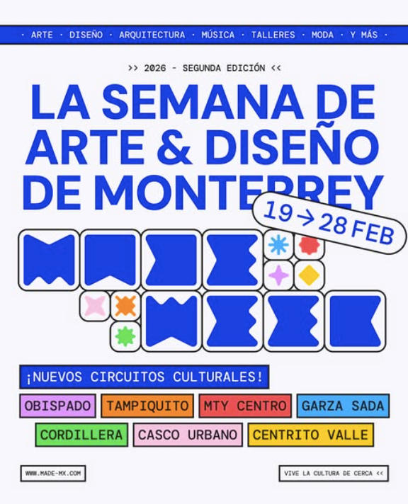 En esta nueva edición traemos nuevos circuitos culturales, más días y más eventos para recorrer Monterrey a través del 🎨 arte · ✏️ diseño · 🏛️ arquitectura · 🎶 música · 👕 moda · y más… 👀