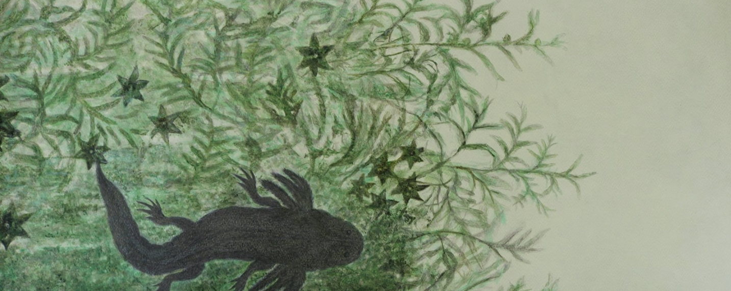 A Smith le intrigan los ajolotes como superficie. Como campo de negociación desde las membranas, entre lo interno y lo externo, entre diferentes escalas, en tanto pantalla de proyección y su inevitable escamoteo de cualquier identidad. Con esta muestra, Smith propone una animación que especula sobre un mundo donde los ajolotes flotan más allá de peceras y sus cuerpos de agua, mientras que, por otro lado, el espectador —en una especie de cuarto de control, como aquellos que miran hacia el espacio exterior— contempla una serie de registros visuales sin saber si los anfibios están adentro o afuera, si son parte de este mundo, si es algo remoto o por venir. Smith invita así a imaginar un tiempo de libertad en que el mundo había sido posible.