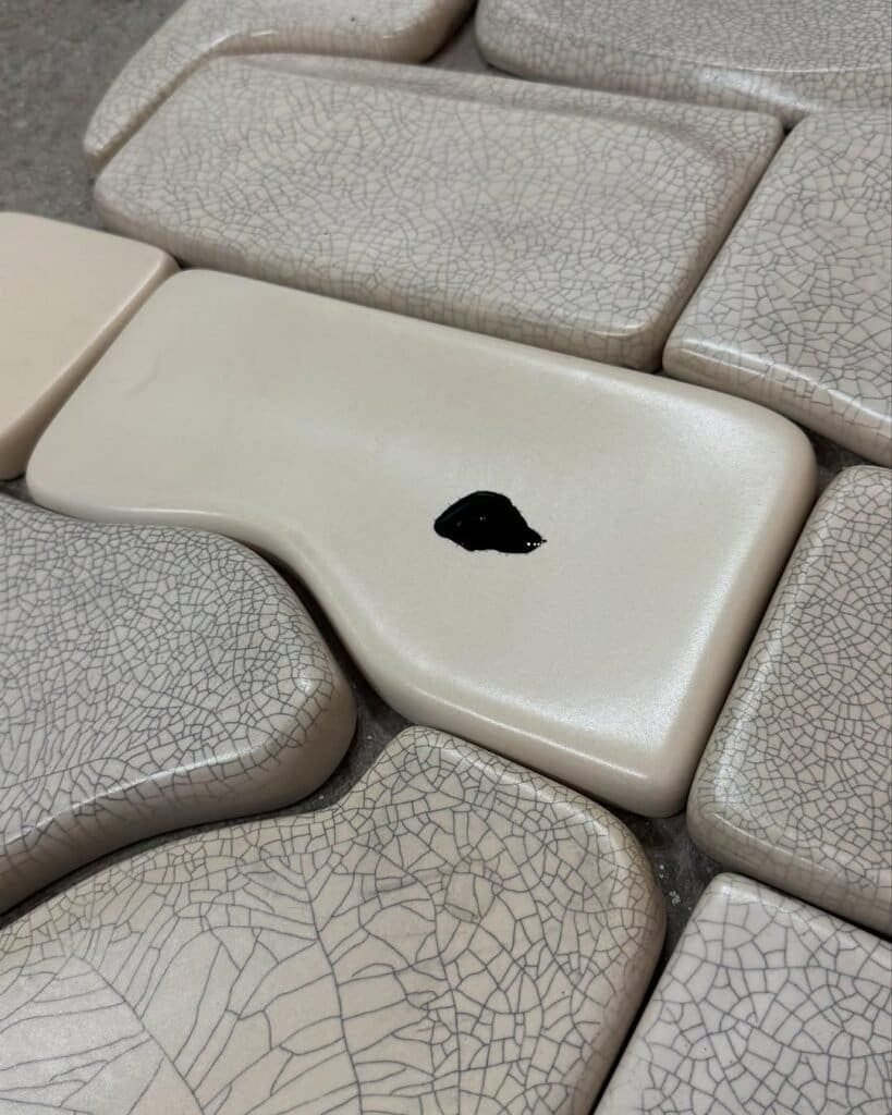 Carri realiza piezas que oscilan entre la escultura y la cerámica explorando la relación entre materialidad y emoción. Su obra